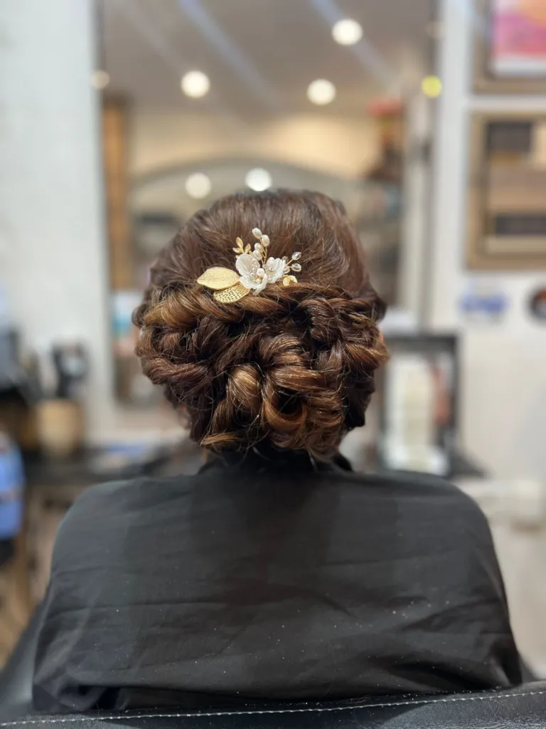 Que vous soyez la mariée, la témoin ou invitée d’honneur, nous vous accompagnons dans le choix d’une coiffure élégante et durable : chignon flou, tresses bohèmes, brushing sophistiqué ou wavy naturel. Nous réalisons un essai coiffure en amont pour ajuster chaque détail, en harmonie avec votre robe, votre morphologie et l’ambiance du jour.